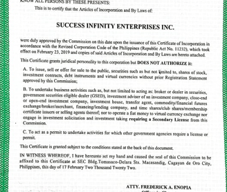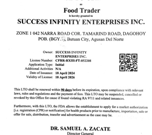 Our promise to you is simple: every product you purchase and every business opportunity you explore with us is backed by the full faith and approval of all relevant government bodies. We have diligently secured our registration and licenses to ensure we operate with absolute legitimacy. Our corporate structure is registered and recognized by the Securities and Exchange Commission (SEC), and our financial integrity is affirmed by our compliance with the Bureau of Internal Revenue (BIR).